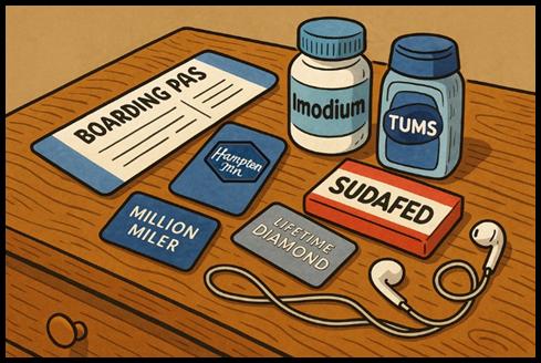 the plane so my ears don’t clog, not needing Imodium just to get through