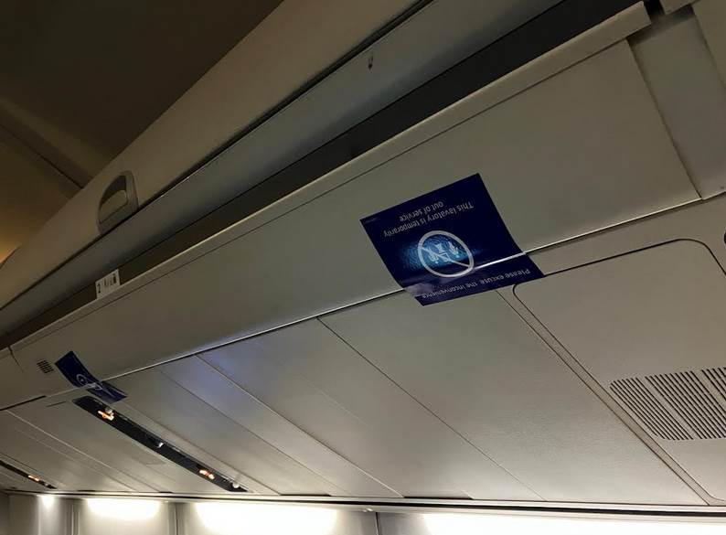 Things were going smoothly – until they weren’t. While we were taxiing, one of the overhead